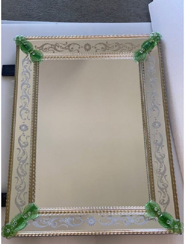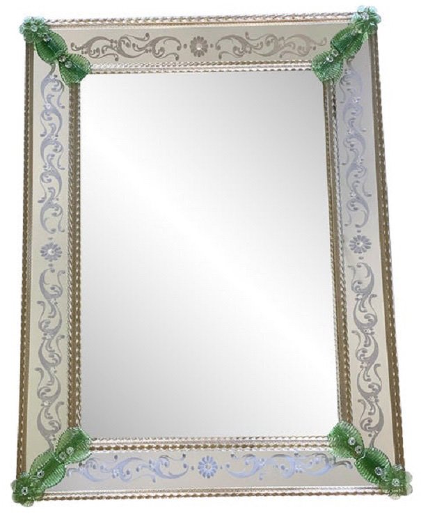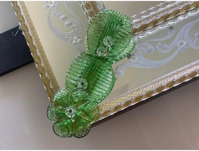 Venetian Rectangular Green Floreal Hand-Carving Mirror by Simoeng