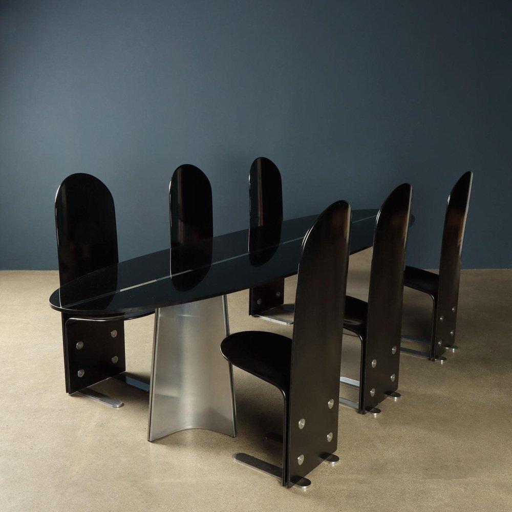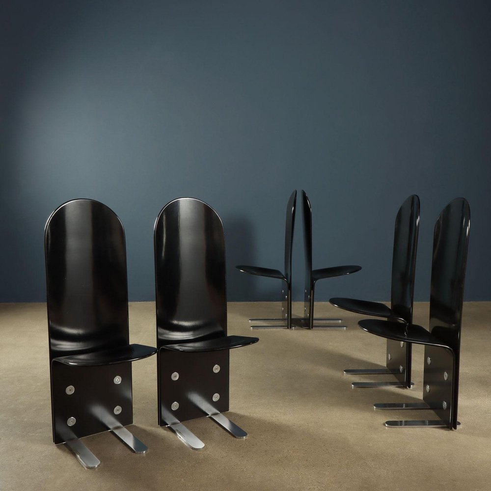 Vintage Armet Pellicano Chairs in Steel and Wood by Luigi Saccardo, Set of 6