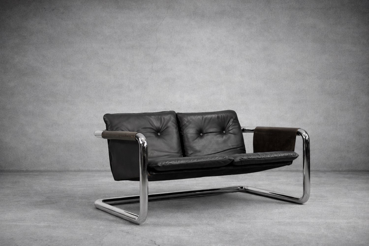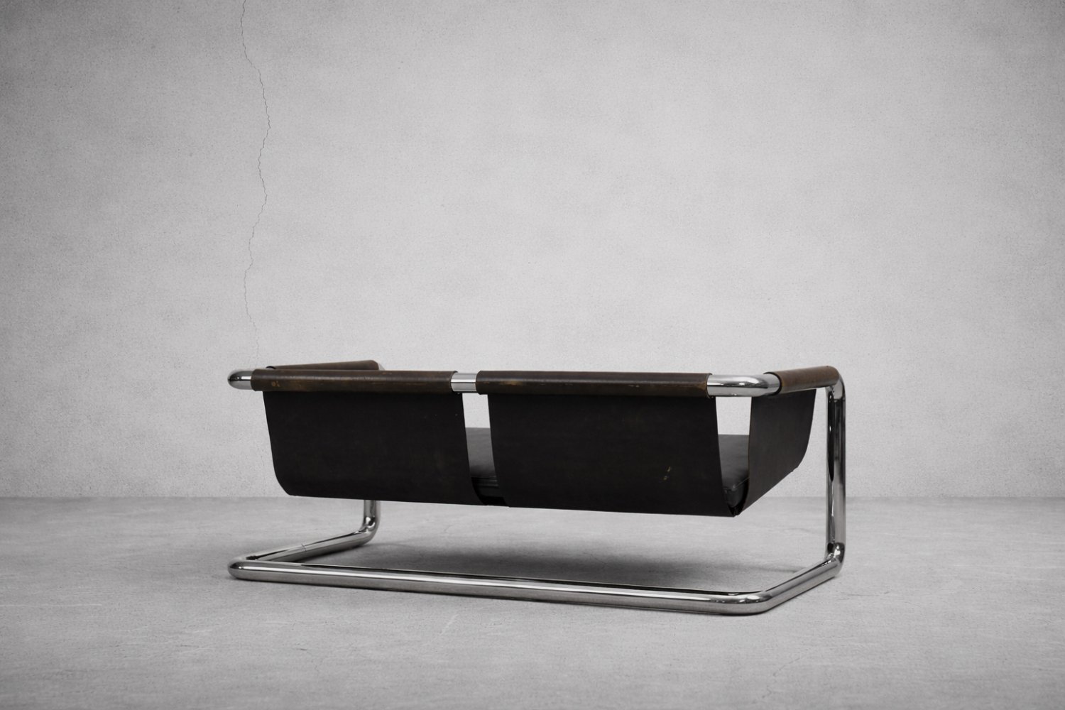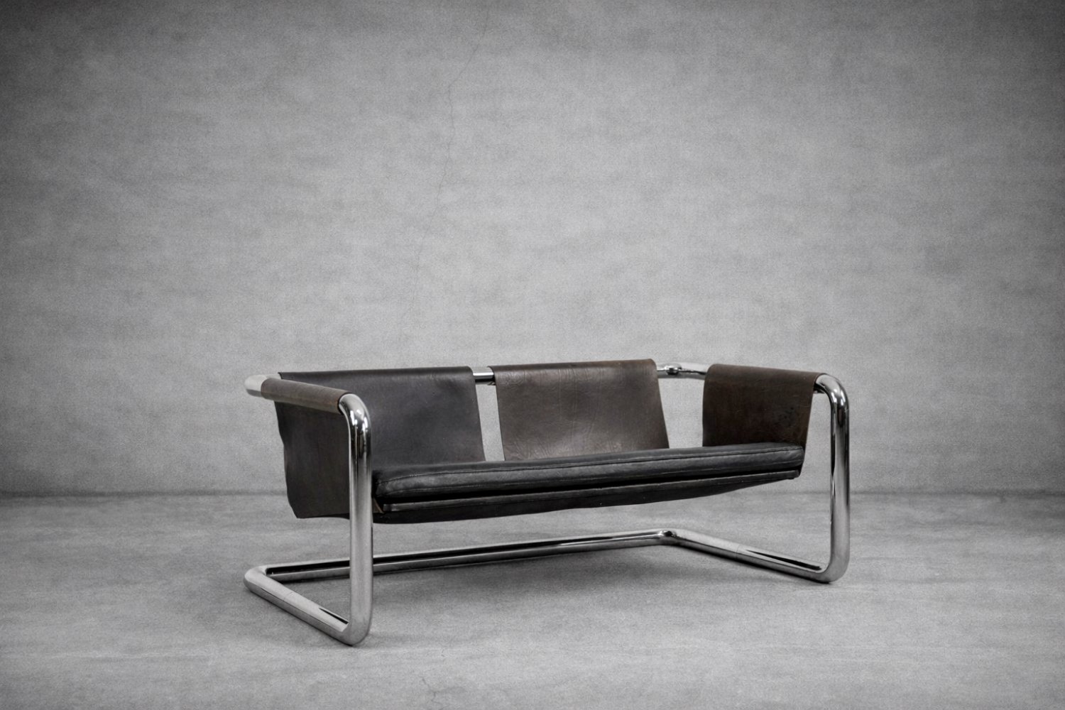 Vintage Bauhaus Tubular Metal & Leather Sofa, 1950s
