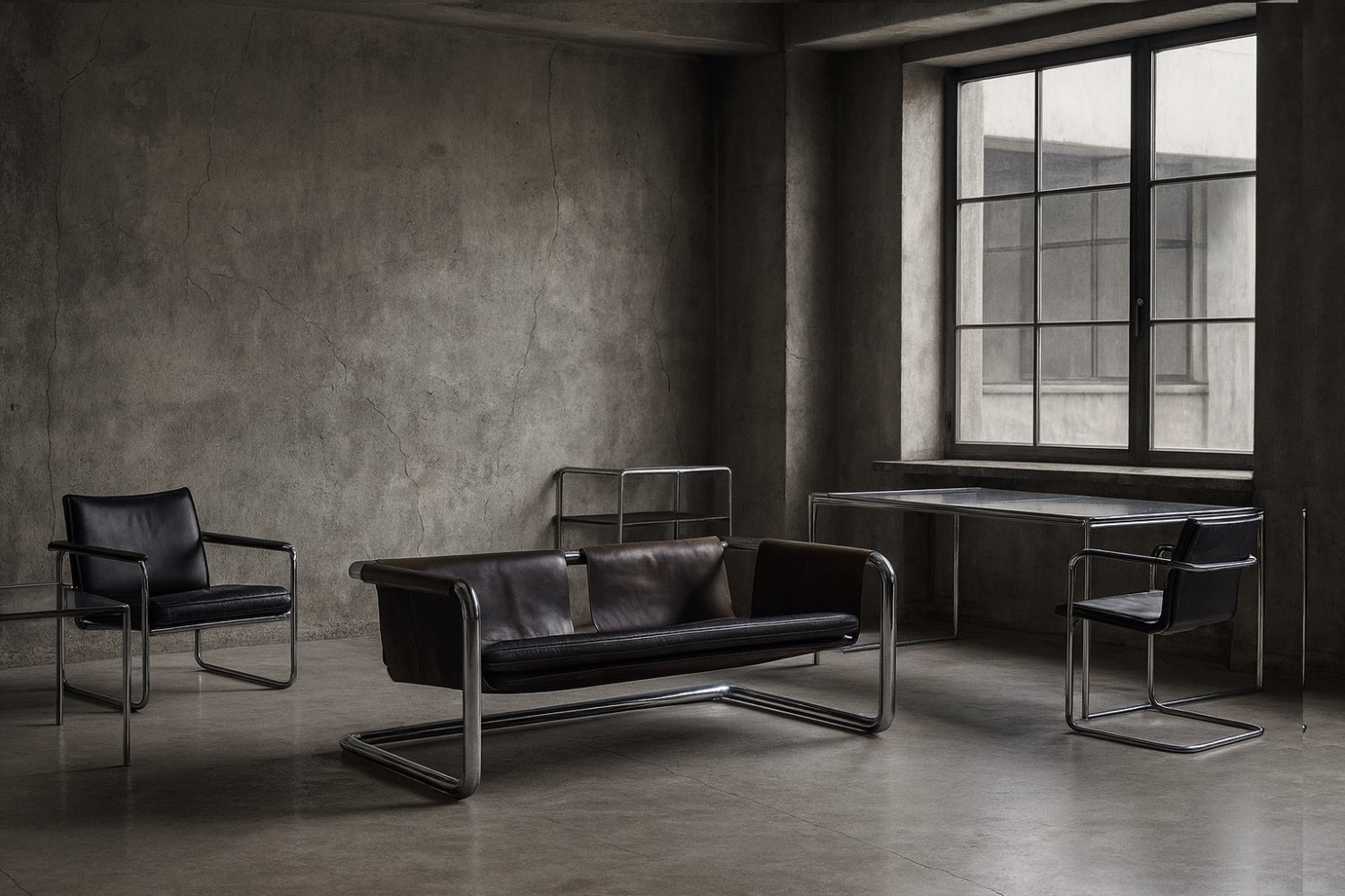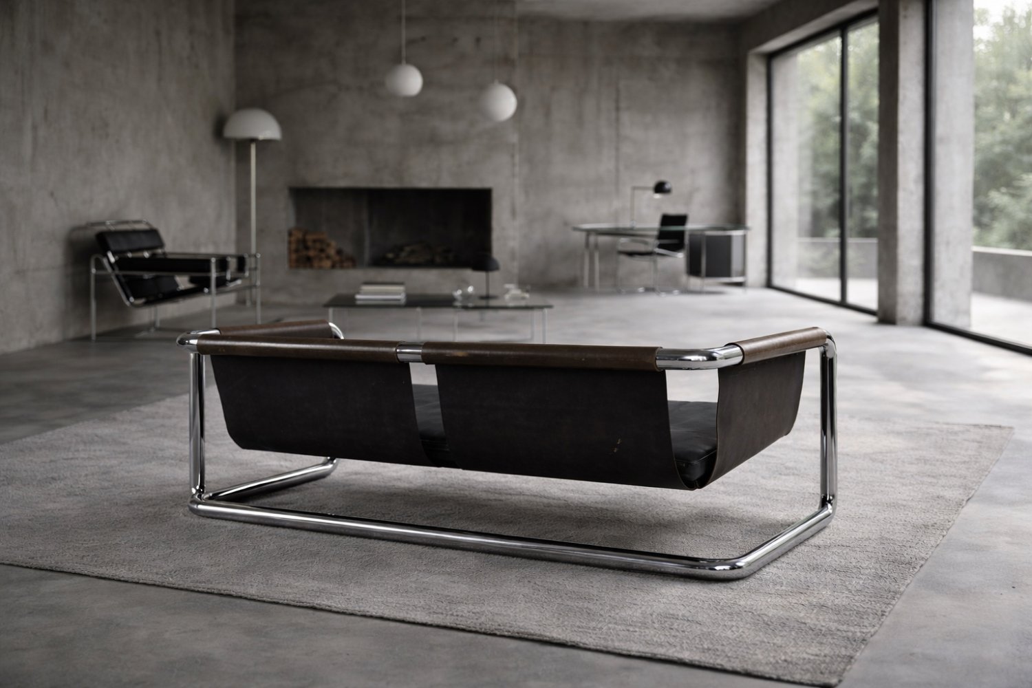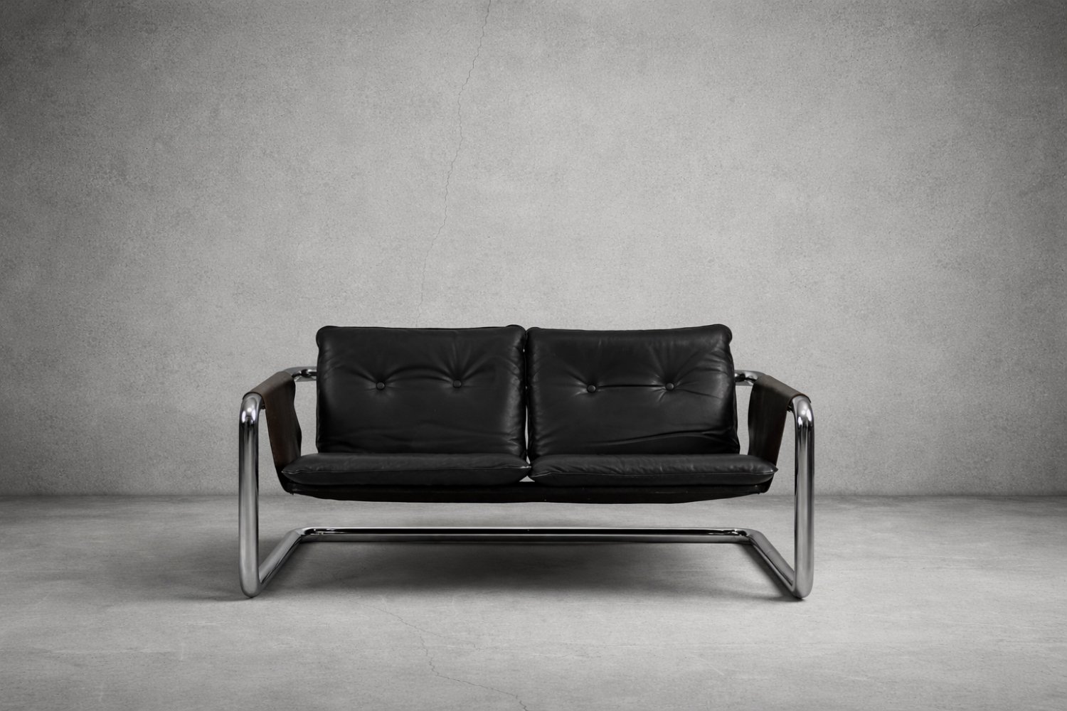Vintage Bauhaus Tubular Metal & Leather Sofa, 1950s