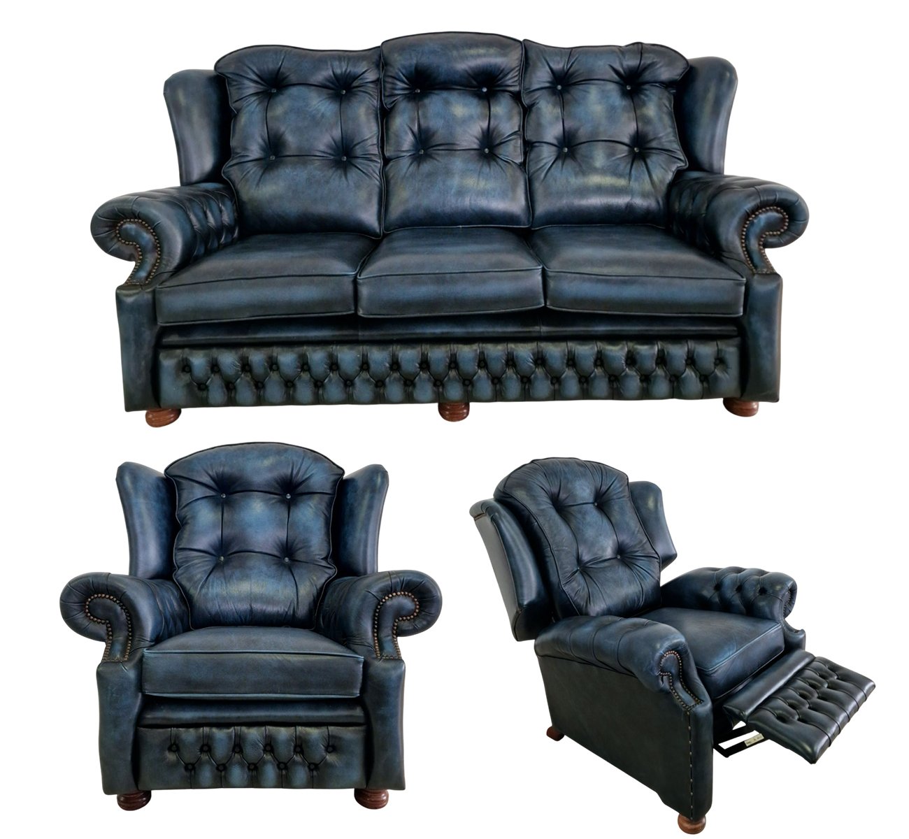 Vintage Chesterfield 3/1/1 Living Room Set, 2000s, Set of 3