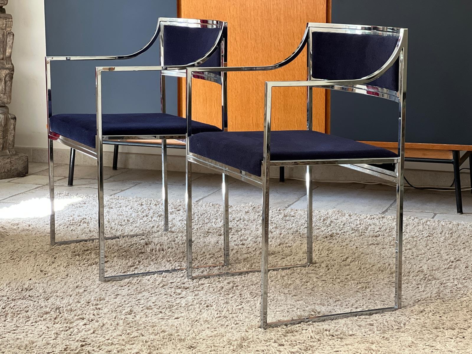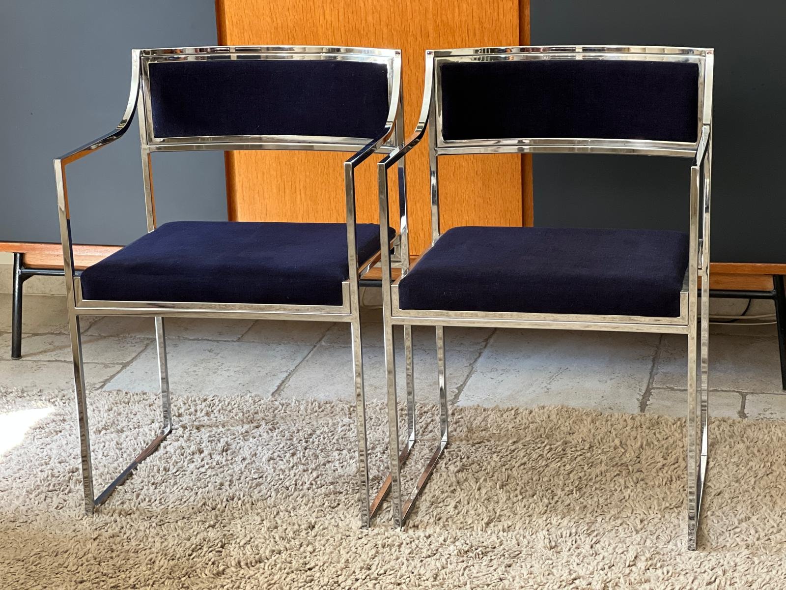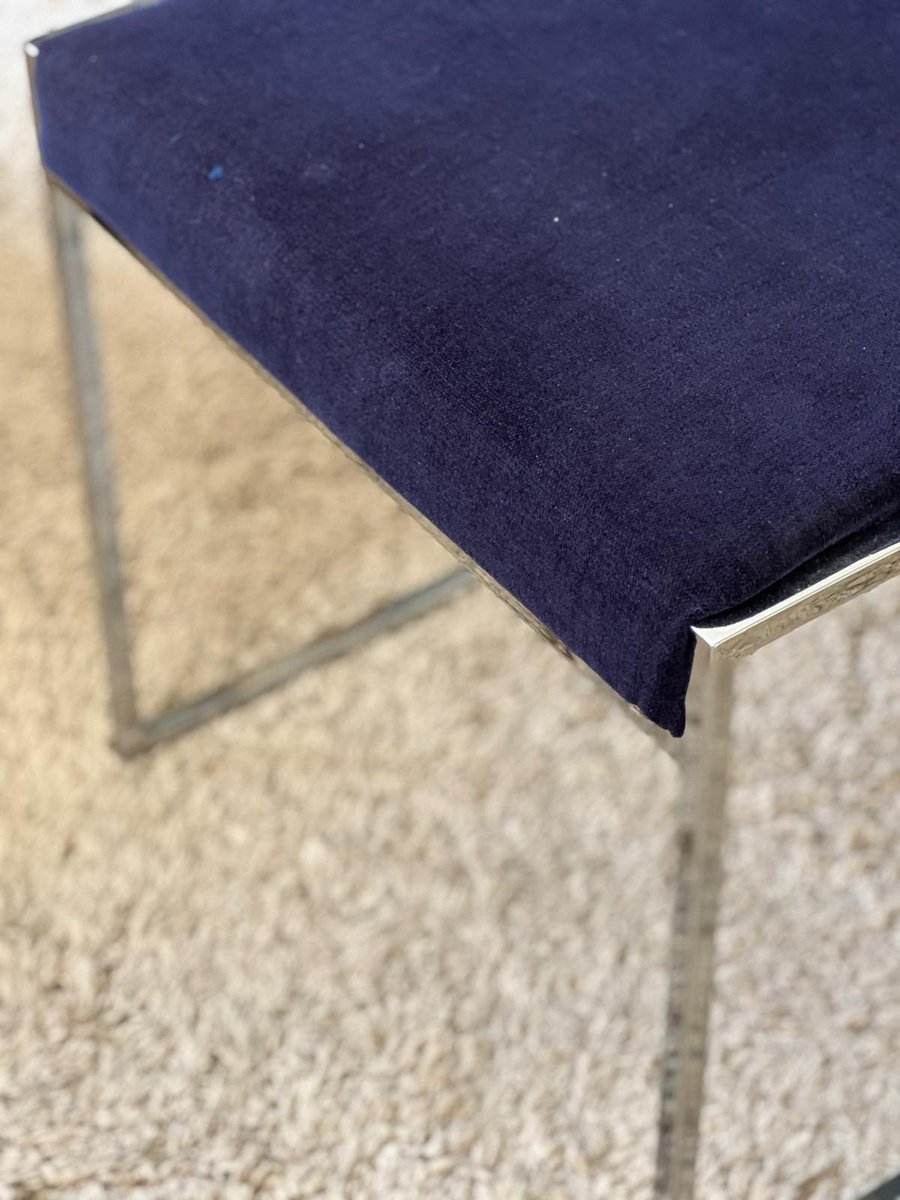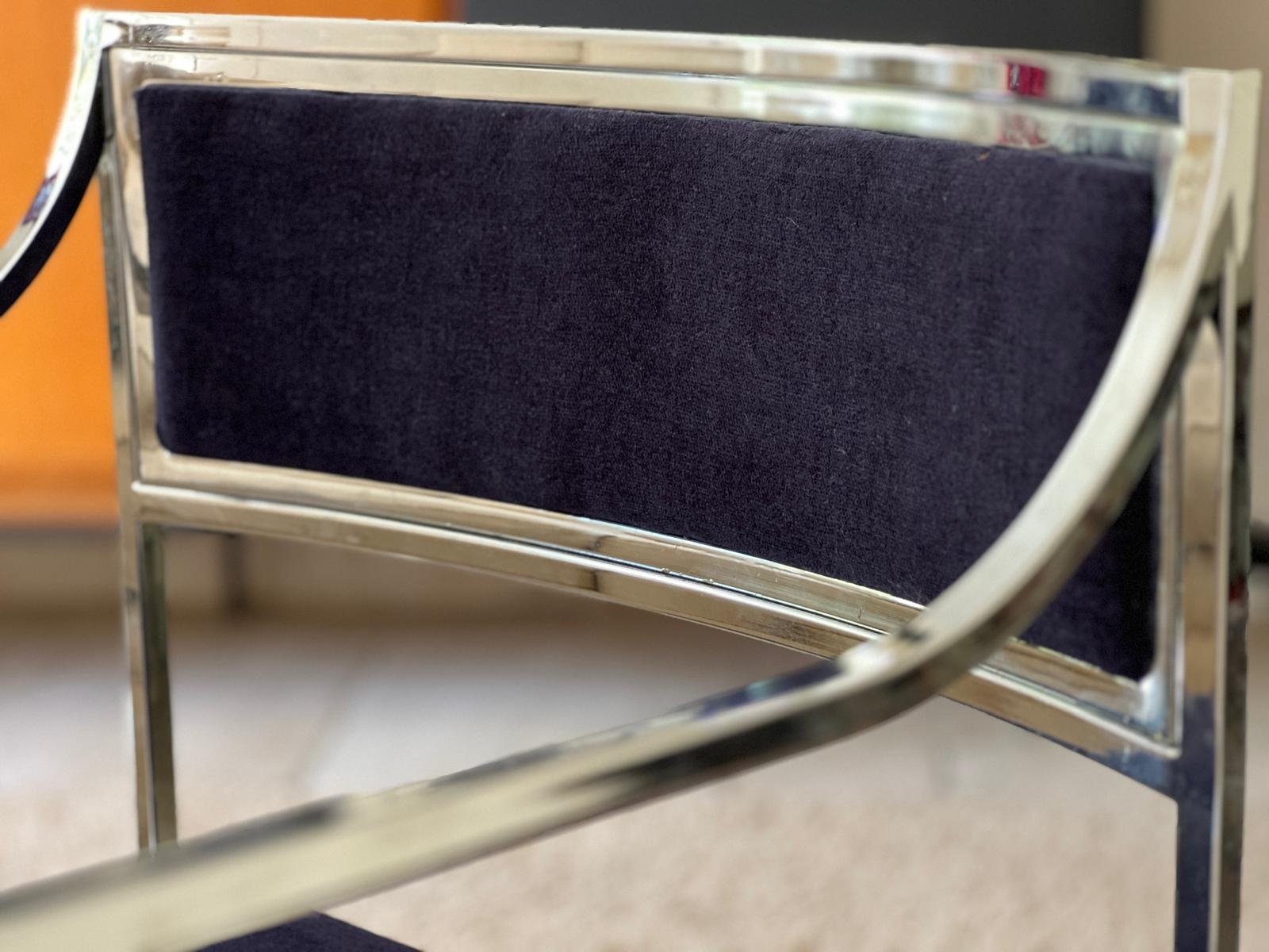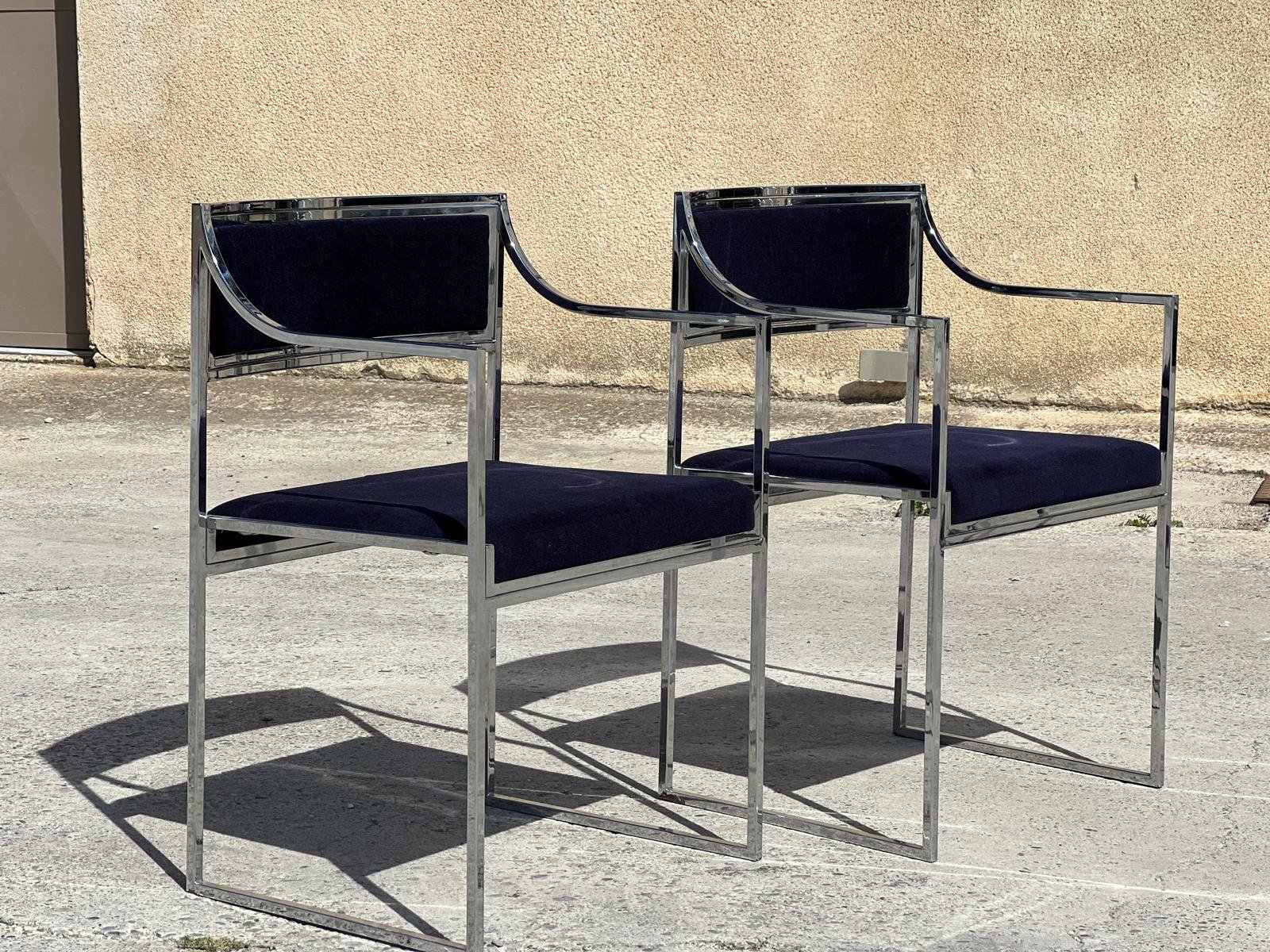 Vintage Italian Metal and Velvet Armchairs, 1970, Set of 2
