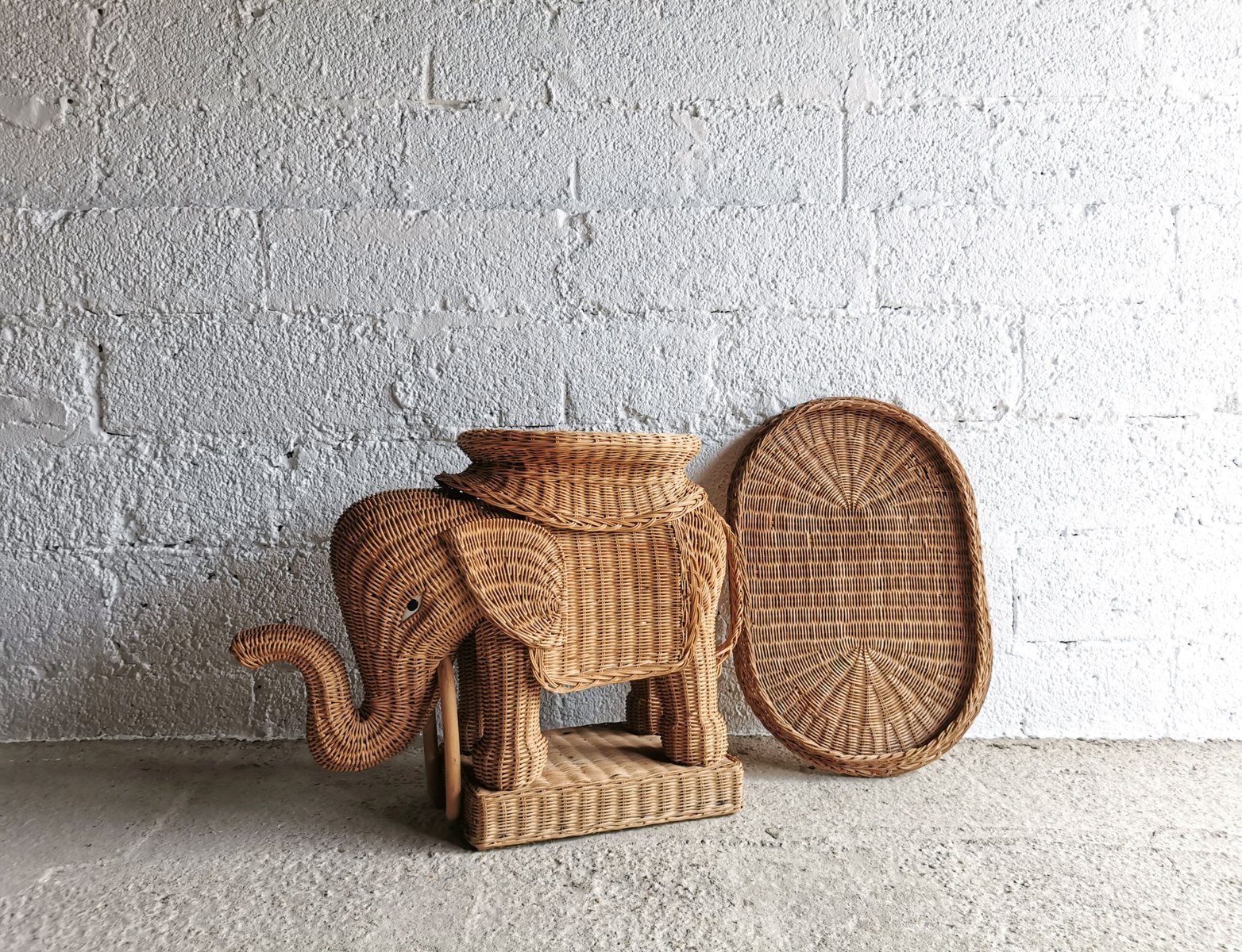 Vintage Rattan & Wicker Elephant Coffee Table from Vivai Del Sud, Italy, 1960s