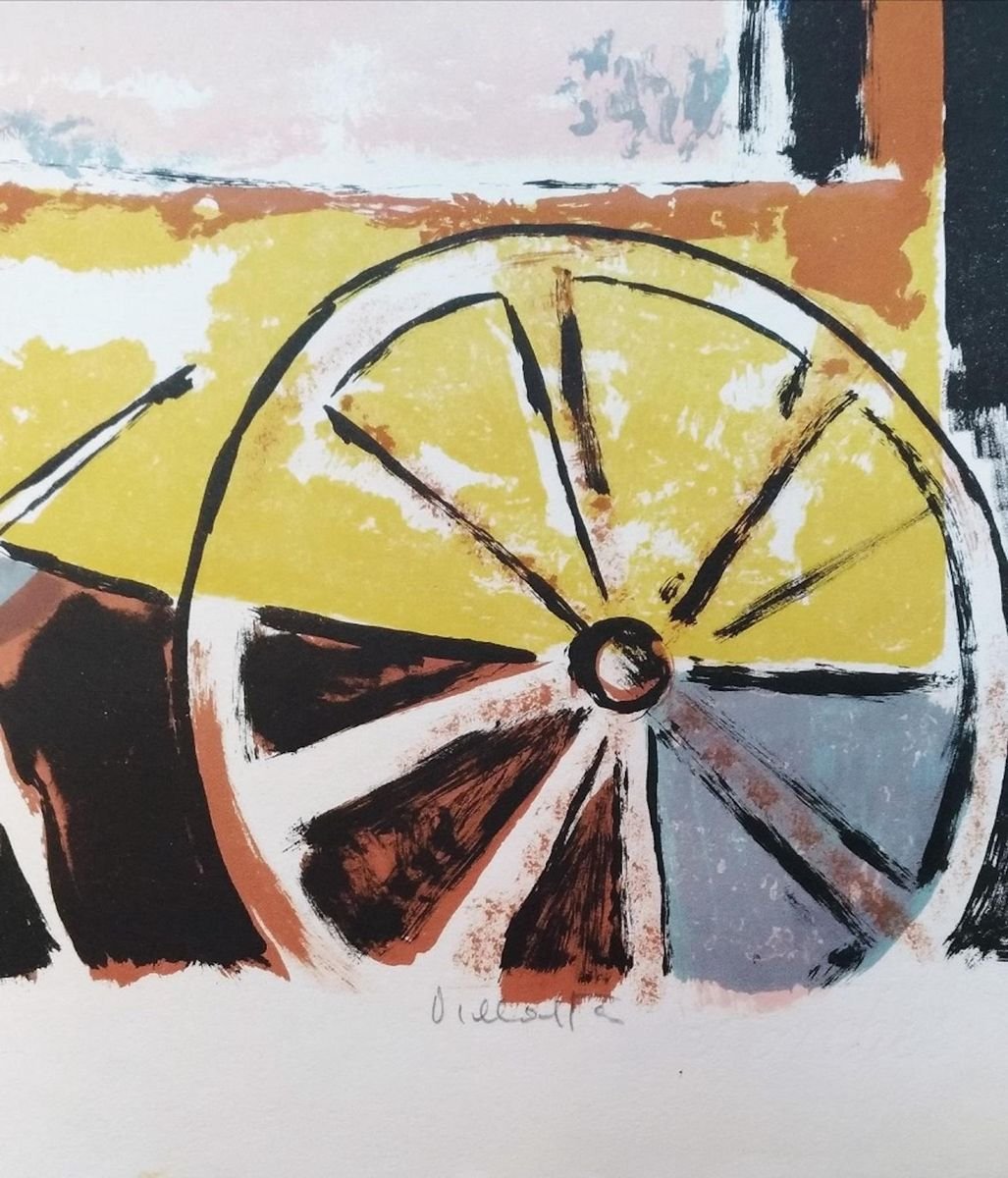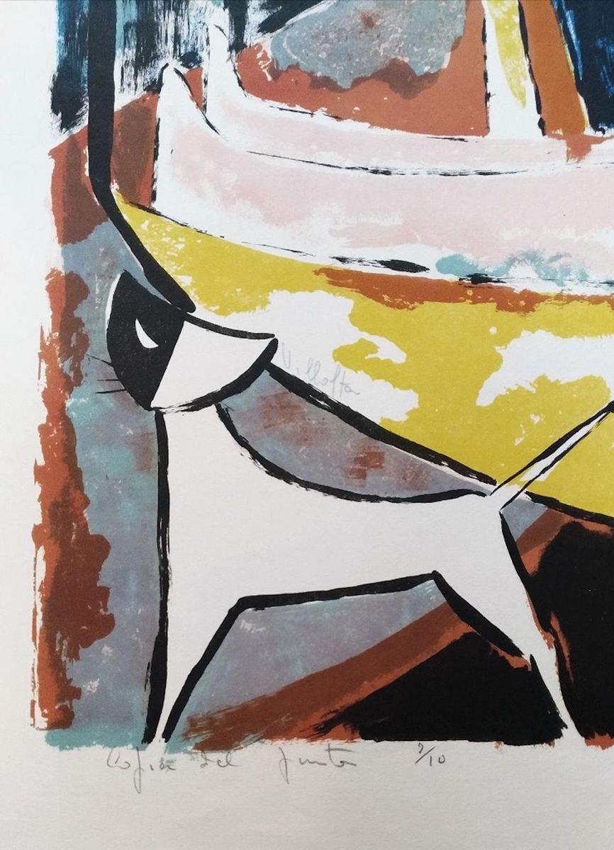 Woman with Cat - Original Lithograph by Mariano Villalta - Late 1900 Late 1900